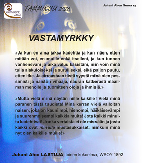 ![]() Vastamyrkky - Juhani Ahon Lastuja toinen kokoelma 1892 |