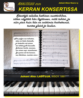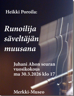 ![]() Heikki Poroila: Runoilija säveltäjän muusana. Juhani Ahon seuran vuosikokouksessa maanantaina 30.3. klo 17. |