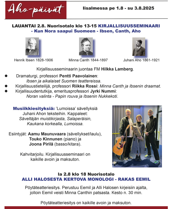 ![]() Aho-päivät Iisalmessa pe 1.8 - su 3.8.2025 |