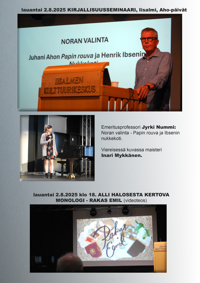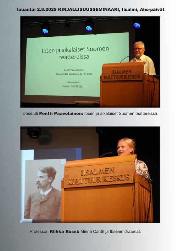 klo 13.00 Kirjallisuusseminaari JUHANI AHO JA TUNTEET. Seminaarin juonsi Simo Juva.