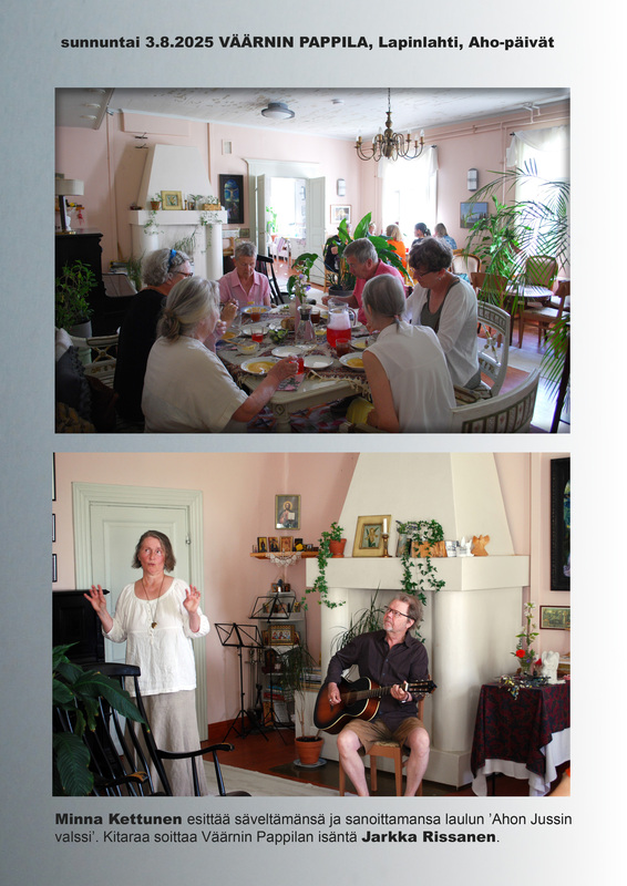Kvintologi eli viisi Juhani Ahon aikalaisnaista kertoo hänestä. Tekstri ja kerronta Minna Kettunen, musiikki ja kitara Jarkka Rissanen. Väärnin Pappilan tuotanto.https://www.vaarninpappila.fi